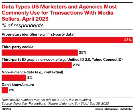 43% of marketers are already using first-party data for transactions with media sellers, more than third-party cookies (25%), as per Emarketer.